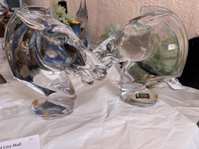 Pair Sevres French Crystal Horse Head Sculpture Mid Century Modern France 1970's