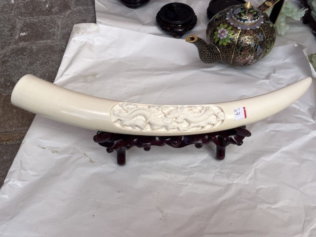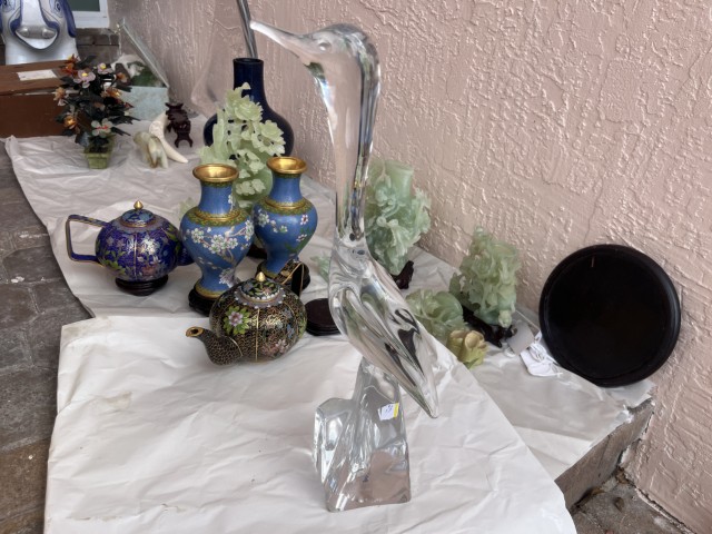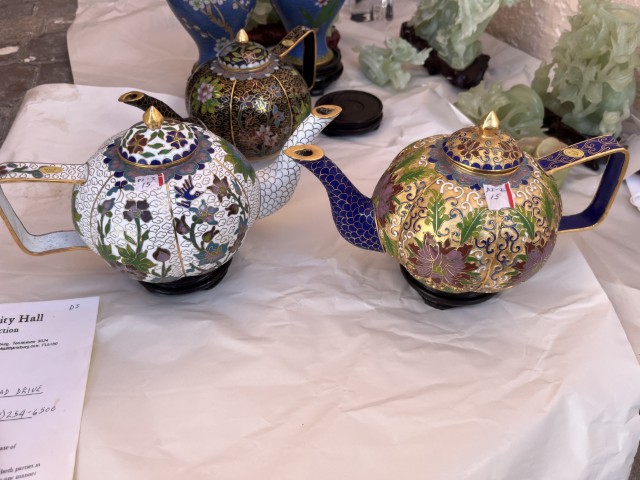 VTG Chinese Black Floral Enamel Tea Pot & 2-Hand Painted Eggs
