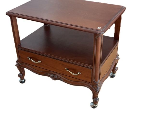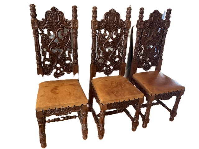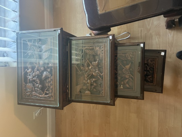 VTG Carved Elmwood Glass Top Nest of 4-Tables