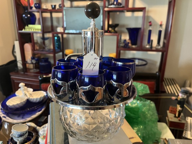 VTG Cambridge Cobalt Blue with Chrome Decanter