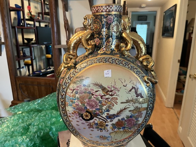 Pair VTG Ball Claw Foot End Tables with Inserted Glass Top
