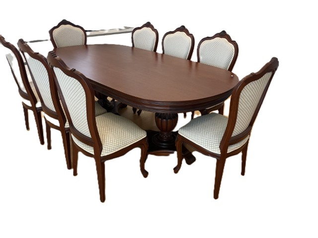 Custom Made Mahogany Oval Dining Room Table, 8-Chairs, 1980's Peru