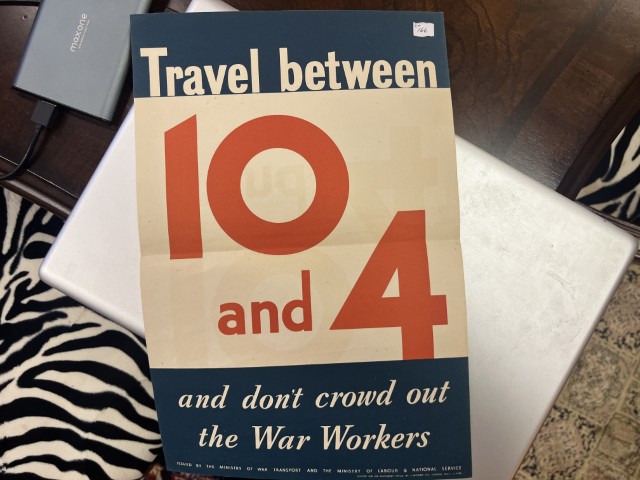'Travel 10 and 4 and don't crowd out the War Workers' 14.5x9.75