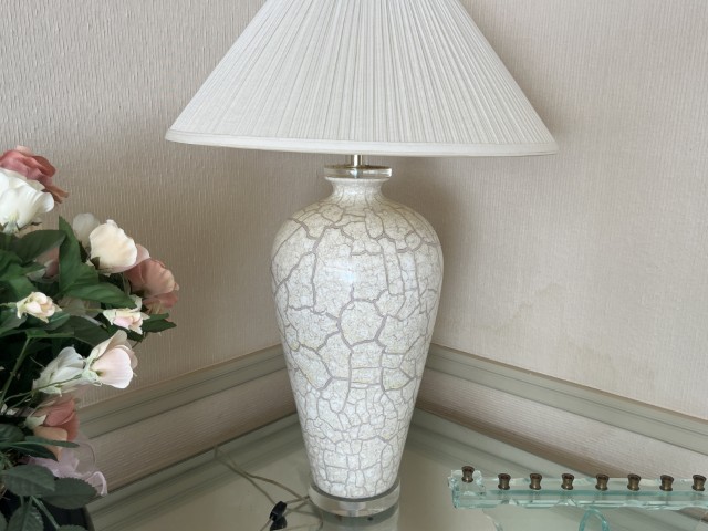 VTG MCM Pair Ceramic Crackel Glaze Finish Lamps with Acrylic Bases