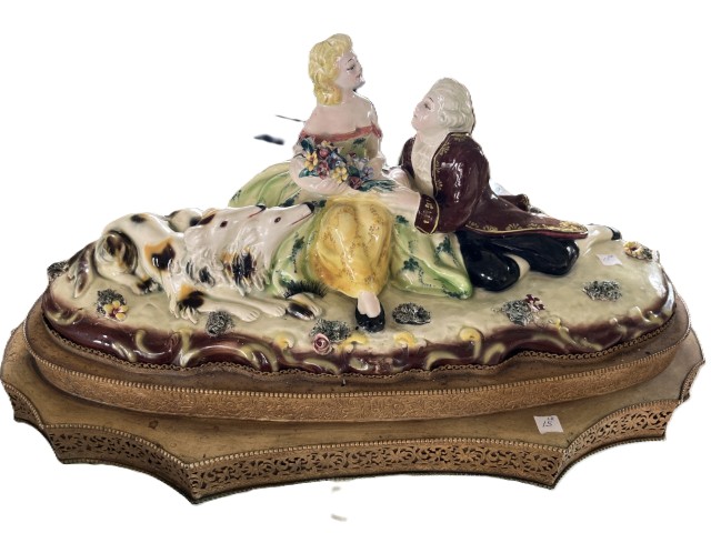 VTG Capodimonte Lighted Porcelain Parlour, Courting Couple. Lovers, Dogs