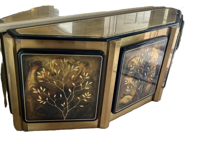 Neoclassical or Hollywood Regency Style Brass & Black Accent Table (1960's-1970's)