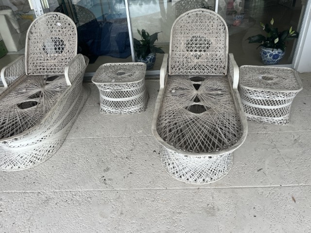 MCM Spun Fiberglass Patio Lounge Chairs & Tables
