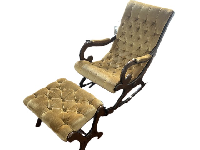 Mid Cent.Victorian Style Rocking Chair, Tufted Upholstery with matching Ottoman
